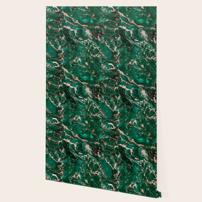 Modern Rose Gold Marble Green Emerald Watercolor Pattern Wallpaper Image information: